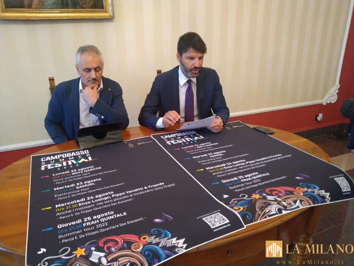 “La terza edizione consecutiva del Campobasso Summer Festival – ha dichiarato il sindaco di Campobasso, Roberto Gravina – rende chiaro come le iniziative culturali che come Amministrazione stiamo portando avanti dall’inizio del nostro mandato, seguano una precisa linea programmatica e di sviluppo che, nel tempo, acquisisce sempre maggiore valore e riesce a richiamare l’attenzione di pubblici di volta in volta diversi. Di questo non posso che ringraziare l’assessore alla Cultura Paola Felice e tutto il settore che con lei lavora per presentare delle proposte coerenti con quanto avevamo in animo di fare, innovando l’offerta culturale e, nel caso del Campobasso Summer Festival, soprattutto quella musicale nella nostra città. Dopo le belle esperienze che Campobasso ha avuto modo di vivere in questi ultimi mesi con concerti di assoluto livello, penso a Mario Biondi, Litfiba, proposti dall’Amministrazione comunale in prima persona, ma anche con la tappa del tour di Elisa, – ha sottolineato Gravina – si torna nel Parco del Quartiere di San Giovanni per proporre una quattro giorni che, dal punto di vista artistico e musicale, si è voluta indirizzare principalmente verso un pubblico giovane, riuscendo a inserire nel calendario del Summer Festival tappe dei tour di artisti da loro amati e seguiti, vedi Frah Quintale e Noyz Narcos, per i quali tanti saranno anche coloro che per assistere ai loro spettacoli arriveranno da fuori città. Si è poi pensato anche di inserire nel programma la tappa campobassana dell’Elettronica tour di Samuel, un autore e compositore che davvero non ha bisogno di grosse presentazioni, capace di attrarre e coinvolgere un pubblico variegato come gusti e come età. Il Campobasso Summer Festival sta crescendo e, questa è forse la cosa più bella, sta crescendo insieme alla voglia di stare insieme e alla curiosità di scoprire nuove possibili situazioni di aggregazione sociale e culturale.”